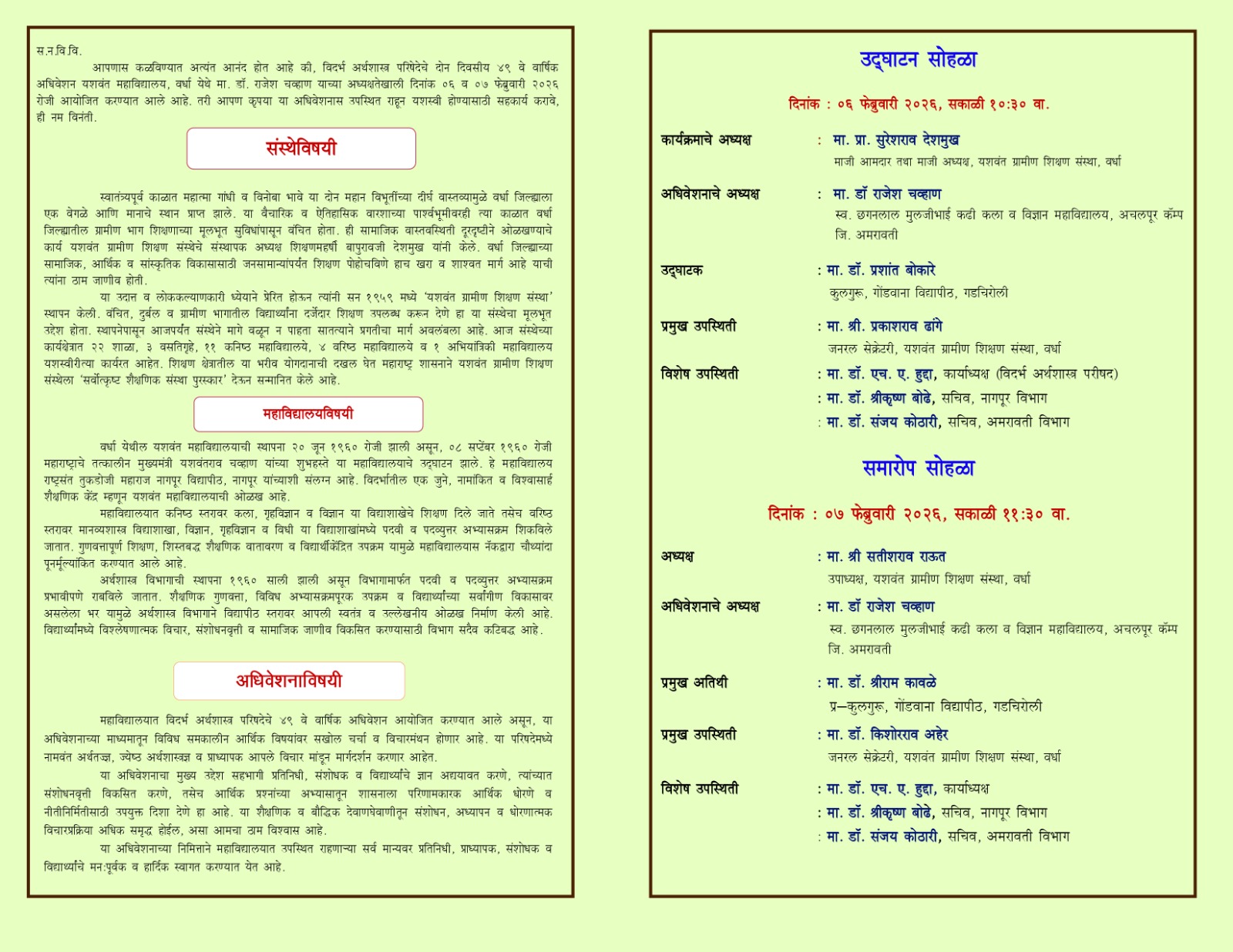 यशवंत महाविद्यालय सस्नेह निमंत्रण 2025